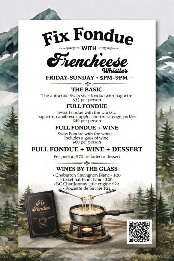 For booking you can use the link below or call directly Frencheese whistler by email or by phone 778 802 5449